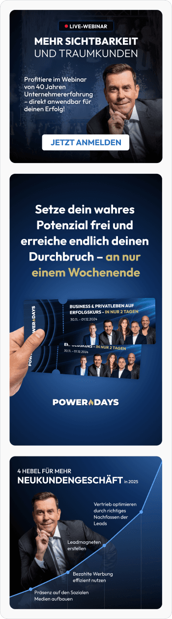 This case study documents results from our 2024 half-year-collaboration with one of Europe's leading success trainers and seminar entrepreneurs. This partnership focused on passing along our expertise and completely rebranding Jürgen Höller in order to drive measurable performance enhancements and revenue optimizations.