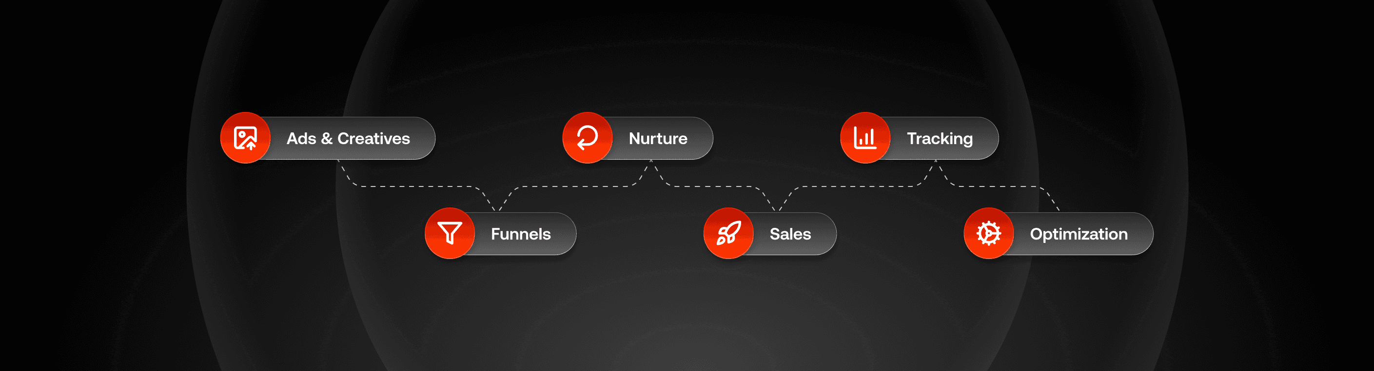 One Connected System: Positioning, lead gen, ads, nurture, sales, and tracking working together instead of isolated tactics fighting each other.