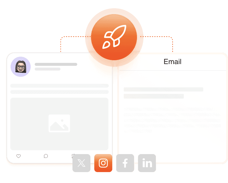 Generate social posts, email and high-conversion copy flows, or ad campaigns instantly. Every asset builds on proven conversion frameworks, not generic templates.